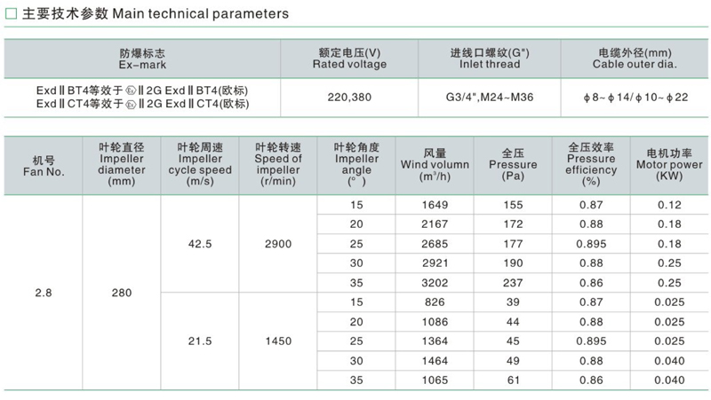 1.本產(chǎn)品由防爆電機、葉片、風(fēng)筒等組成.